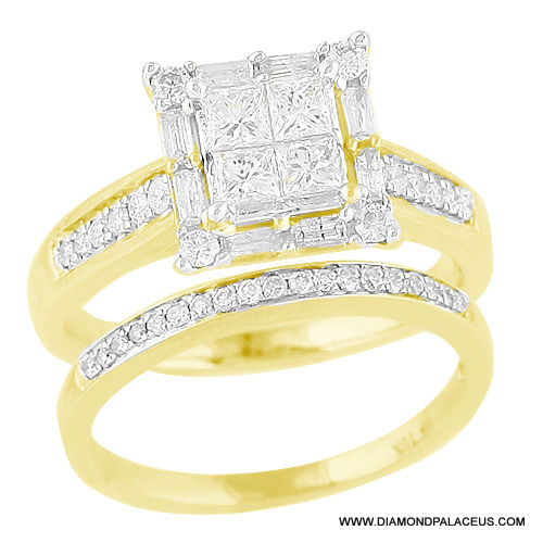 10ky 1.00ctw Princess Cut Diamond Head Bridal Set